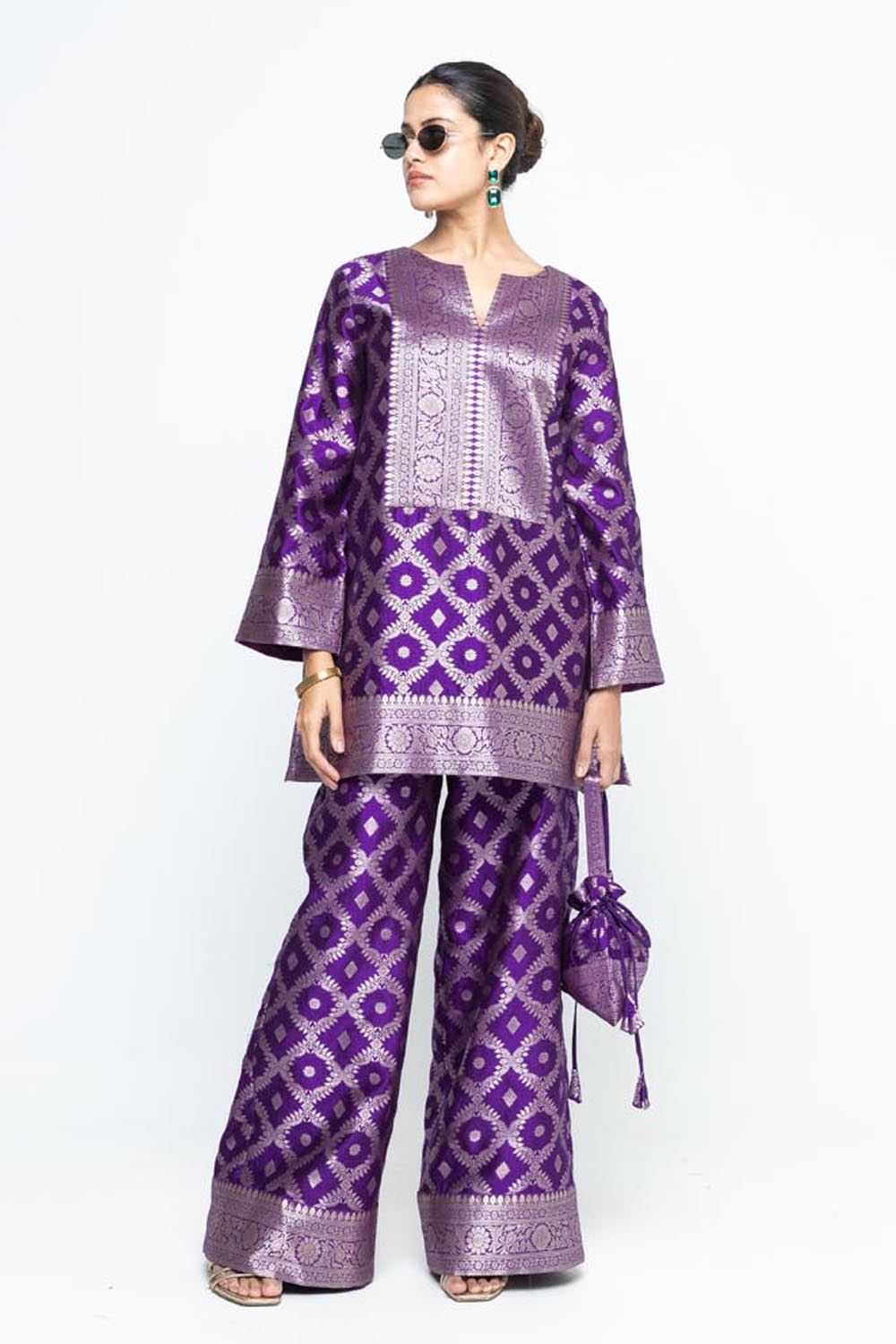 Arushi Mehra In Our Heera Brocade Jaal Kurta With Pants - Purple