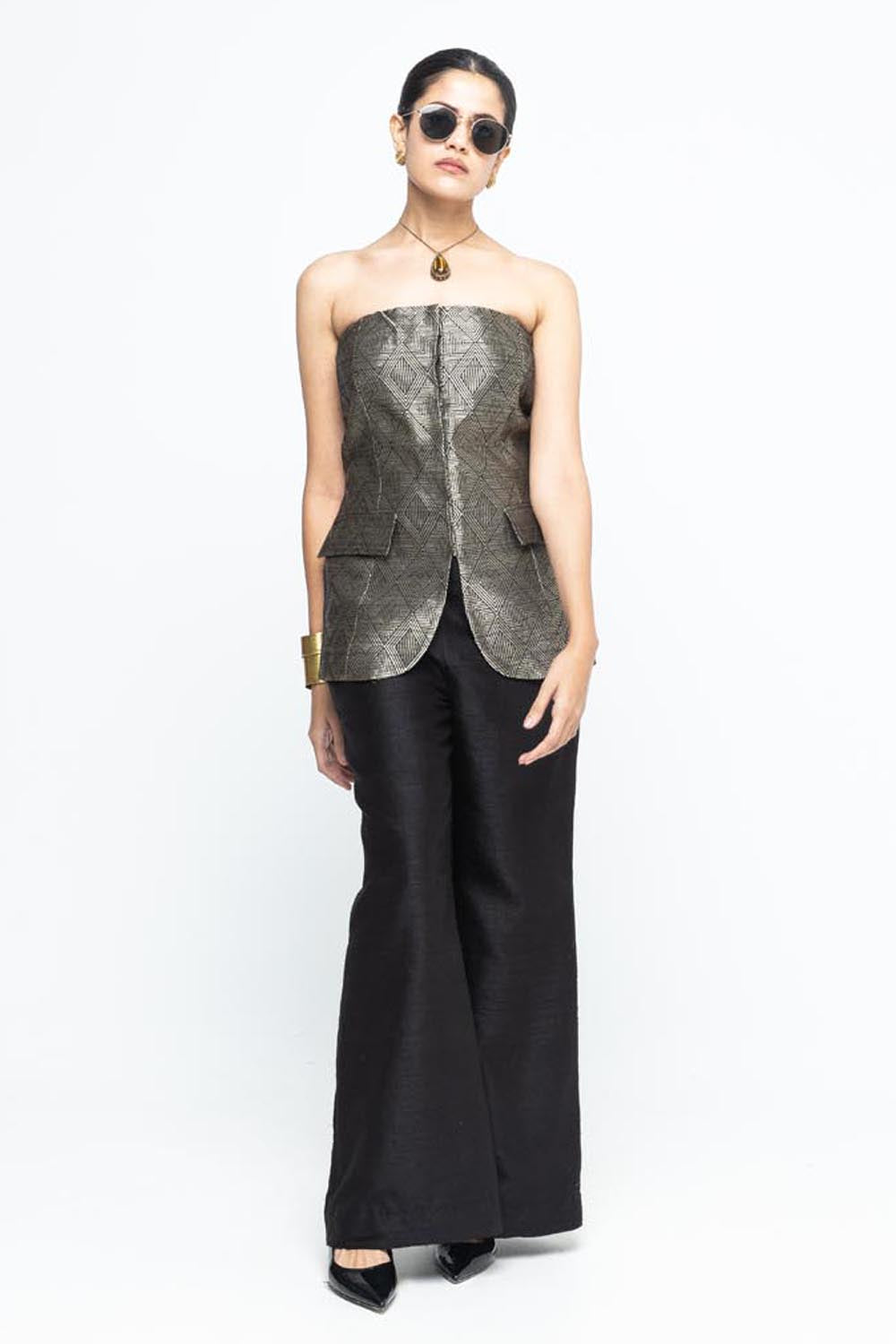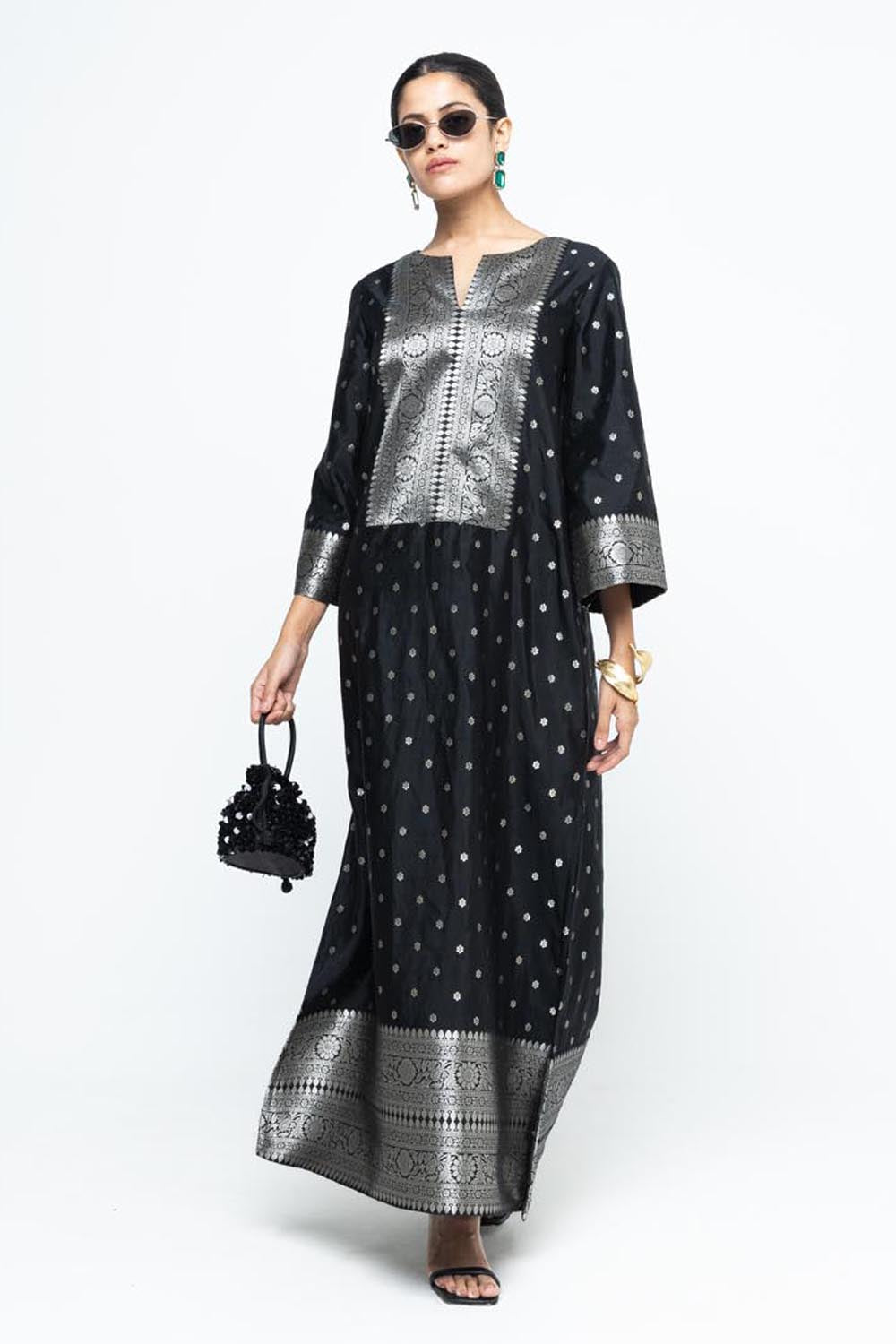 Nats Statement Silk Kaftan With Brocade Detail - Black