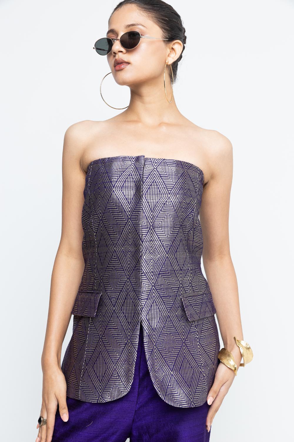 Trisha Statement Silk Cape & Skirt Set - Purple