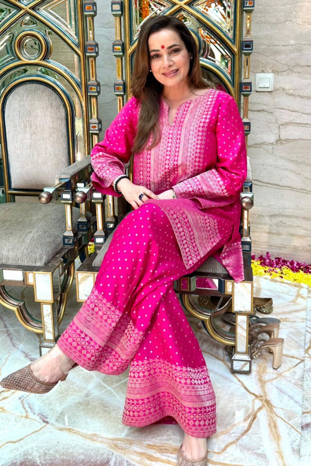 Neelam Kothari Soni In Our Sitara-Dotted Silk Kurta Set (Pink)
