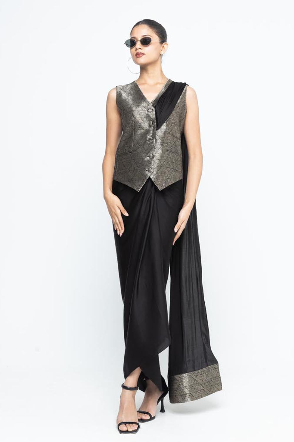 Kiara Statement Waistcoat Saree - Black